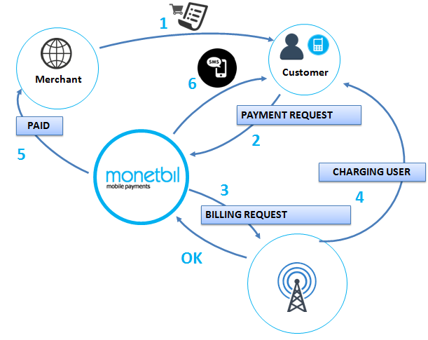 - Monetbil sends a payment confirmation via SMS / email to the customer.